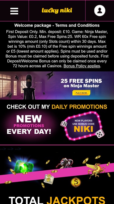 Lucky Niki -kasino, liittyi heihin äskettäin, mutta odotin itse asiassa hieman kokeneempaa, hieman tavallista tylsää verkkosivustoa, ne eivät todellakaan ole mitään erityisiä, promoot ovat kunnossa, mutta ongelmana tässä on hidas nostojen käsittelyaika, jota pelaan enimmäkseen vain kasinoilla, joilla on 1-2 tunnin käsittelyaika e-lompakoille, ja tässä se ei valitettavasti ole niin nopeaa, asiakastuki oli kunnossa, kesti hetken ennen kuin agentti vastasi chatissa, mutta vastasi, missä kohtuullisessa ajassa mobiilikasino toimi hyvin, mutta asiat ovat Minulle on hyvä tehdä talletus, vaikka tervetuliaisbonus ei valitettavasti vakuuttaisi minua tekemään talletusta.