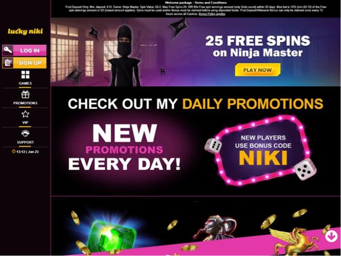 Lucky Niki tarjoaa valtavan määrän videoslotteja, ja monet peleistä ovat huippuluokan kehittäjiltä, kuten Microgaming ja Net Ent. Progressiivisia jättipotteja etsivät pelaajat ilahtuvat kuullessaan, että tarjolla on kohtuullinen valikoima suuria palkintoja, kuten myös mobiilislotteja.