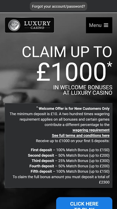 Luxury Casino avasi ovensa alun perin vuonna 2001, ja siitä lähtien se on rakentanut vankan maineen erinomaisesta asiakaspalvelusta, korkeista pöytäpanosrajoista suurille taskuille ja valtavista progressiivisista jättipoteista, joita voi voittaa. Nämä ominaisuudet sekä Canada: Kahnawake -lisenssi ja eCOGRA-sertifiointi tekevät Luxury Casinosta halutun pelipaikan.