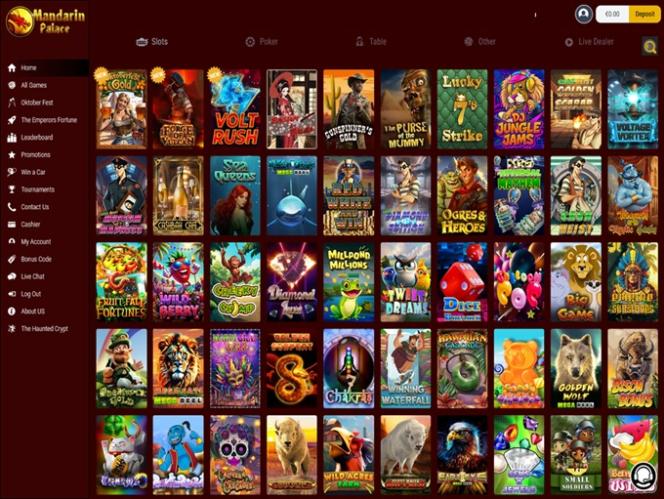 Kolikkopelit ovat suuri osa Mandarin Palace Casinon pelivalikoimasta, ja ne koostuvat pääasiassa videokolikkopeleistä. Pelit ovat enimmäkseen sitä, mitä nettikasinolta voi odottaakin, vaikka tarjolla on myös ainutlaatuisia pelejä, kuten Arcadia.