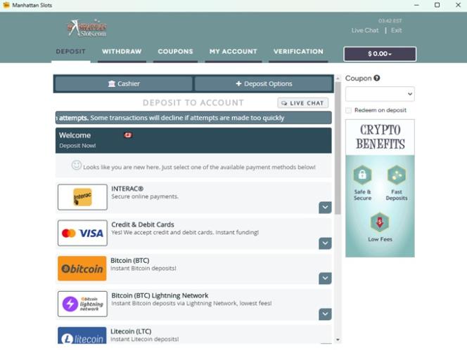 Manhattan Slots salaa pelaajatiedot 128-bittisellä SSL-salaustekniikalla, joka ottaa vastaan ja sekoittaa tietokoneesi ja kasinon palvelimien välillä lähettämiäsi tietoja.