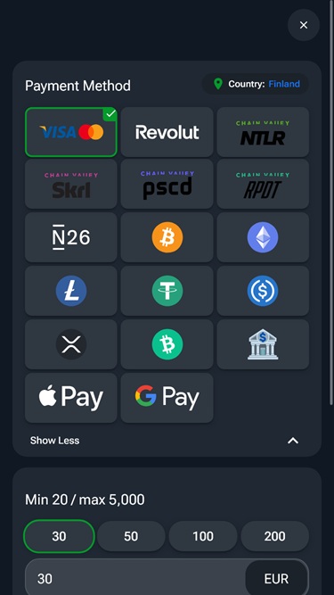 Koska tämä on ensisijaisesti kryptopainotteinen uhkapelisivusto, pelaajat voivat tehdä talletuksia ja kotiutuksia useilla kryptovaluutoilla. Nämä maksutavat mahdollistavat välittömät tapahtumat, jotka ovat uskomattoman nopeita, mutta paljon turvallisempia kuin perinteiset pankkivaihtoehdot.