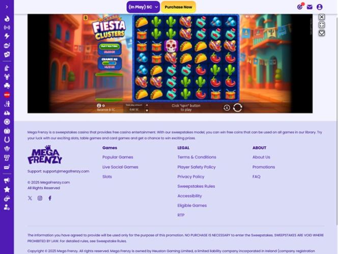 Sen lisäksi, että Mega Frenzy Casinolla on sekä kanta-asiakasohjelma, johon jokainen pelaaja voi osallistua, että eksklusiivinen vain kutsusta saatavilla oleva VIP-klubi, se tarjoaa myös laajan valikoiman kampanjoita ja bonuksia, joihin pelaajat voivat osallistua ansaitakseen lisää kultakolikoita ja Sweeps-kolikoita.