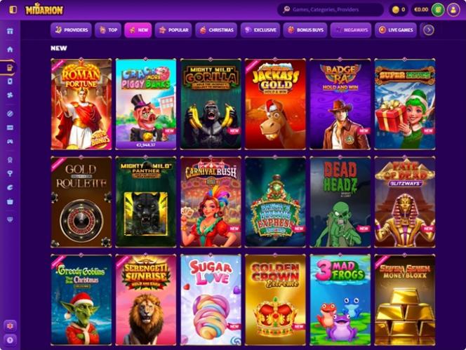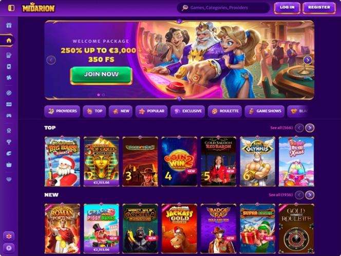 Mutta ennen kuin syvennymme tarkemmin kasinon pelivalikoimaan, on tärkeää sanoa, että Midarion on rakennettu vastaamaan nykyaikaisten pelaajien makua ja tarpeita. Kasinon verkkosivusto näyttää aivan upealta. Siinä on kirkkaat värit ja käyttäjäystävällinen navigointi sekä kauniisti tehdyt graafiset yksityiskohdat ja pikkukuvat. Pelaajat voivat etsiä pelejä, kategorioita ja pelistudioita tai vain selata saatavilla olevia kasinokategorioita, kuten: Ruletti , Peliohjelmat, Blackjack, Hot Jackpotit, Kolikkopelit ja paljon muuta.