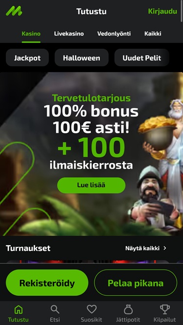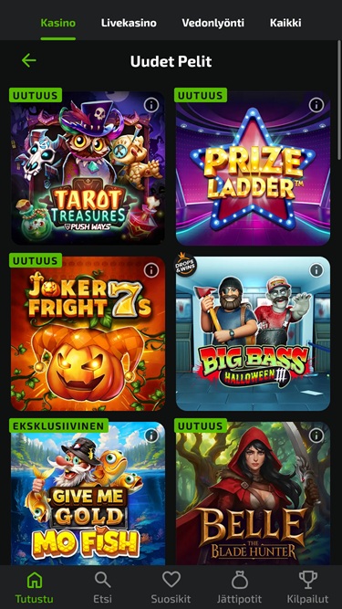 Tykkäsin siitäErittäin hyvä kasino. Heillä on hyvä paikkavalikoima. Hyvät tarjoukset, saan yleensä talletusbonustarjouksia muutaman kerran viikossa. Kotiutukset kestävät yleensä noin 24 tuntia.