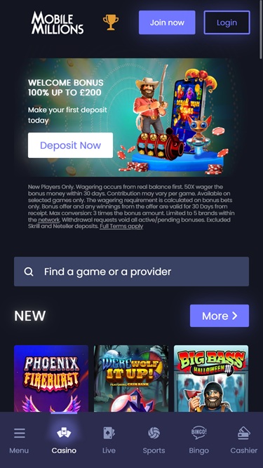 Mobile Millions on uusi kasino edistyneen peliryhmän kasinoista, joka tarjoaa laajan ja laajan valikoiman pelejä Thunderkickiltä, Nextgeniltä ja sen ankkuripalveluntarjoajalta Microgamingilta. Kasinolla on pelaajilleen sekä mobiili- että työpöytäversio, ja mobiilisivustoa päivitetään usein enemmän pelejä jatkuvasti vanhoja kallistettuja ja uusia nimikkeitä, kasinon tarjoamien bonusten kierrättäminen voi osoittautua vaikeaksi korkeiden kierrätysvaatimusten vuoksi, joten on suositeltavaa pelata oikealla rahalla eikä sitoa saldoasi bonusrajoituksilla