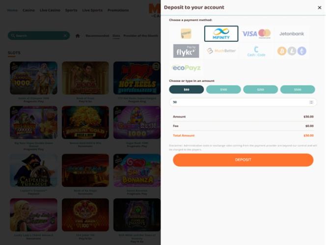 Rekisteröitymisprosessi on vakiomuotoinen ja suoraviivainen. Alustan tausta on valkoinen, eikä siinä ole liikaa visuaalisia häiriötekijöitä. Kaikki kasinon osiot ovat selvästi näkyvissä ja helposti saatavilla. Pelit ovat pelaajan huomion keskipisteenä. Loppujen lopuksi olemme täällä pelaamista varten, eikö niin?