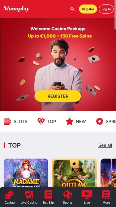 MonoPlay-kasino tarjoaa standardoidun listan suosittuja bonuksia, jotka on suunnattu sekä kasinon pelaajille että innokkaille urheiluvedonlyönnin ystäville.