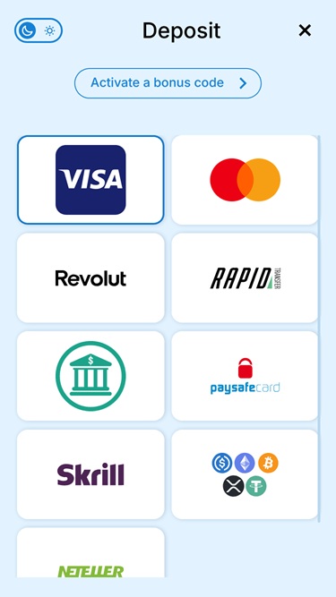 Fiat-valuuttojen, kuten EUR:n tai CAD:n, lisäksi pelaajat voivat käyttää suosittuja ratkaisuja, kuten Bitcoinia, Bitcoin Cashia, Cardanoa, Dogecoinia, Litecoinia, Rippleä, Solanaa, Tetheriä, Tronia ja USD Coinia.