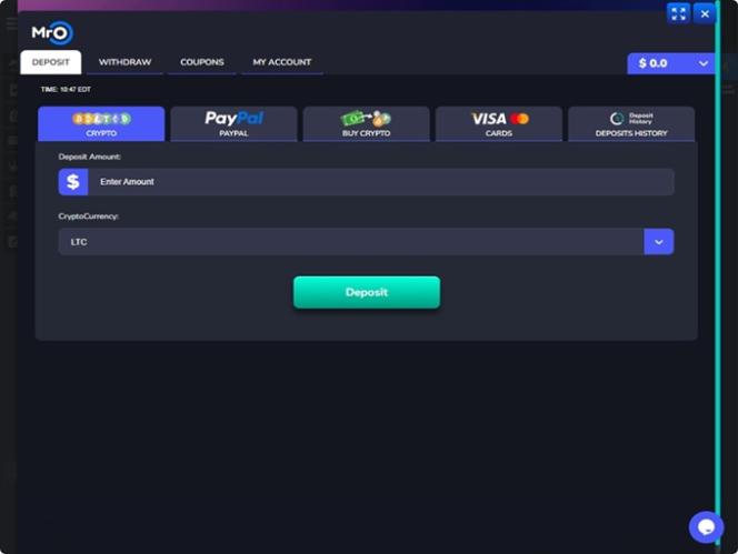 Kuten aiemmin mainitsimme, tämä moderni nettikasino tukee vain kryptovaluuttoja, ja pelaajat voivat tehdä talletuksia ja kotiutuksia käyttämällä erilaisia digitaalisia kolikoita ja kryptomaksutapoja . Operaattori tarjoaa asiakkaille myös erinomaiset kotiutusajat, jopa 15 minuuttia.