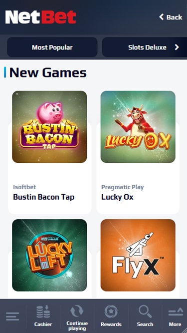 NetBet Casinon tarjoaa Microgaming, Net Entertainment, Playtech, BetSoft, 1x2gaming, Amatic Industries, Barcrest, Big Time Gaming, ELK Studios, Evolution Gaming, EYECON, Ezugi, Habanero Systems, iSoftBet, lightningboxgames, Novomatic, Oryx, Play'n GO, playson, Quickspin, Relax Gaming, Thunderkick, Yggdrasil, Endorphina, Wazdan, Realistic Games, Betgames, Booming Games, BetConstruct, Stakelogic, Pragmatic Play, Nolimit City, GAMING1, Red Tiger Gaming, IGT, Spinomenal, Red Rake Gaming, Skillzzgaming, Fantasma Games, SYNOT Games, Revolver Gaming, Skywind, Spinmatic, Spadegaming, Triple Edge Studios, BGAMING, Northern Lights Gaming, Fazi, Evoplay, Stormcraft Studios, Bulletproof Games, All41 Studios, Gluck Games, Gameburger Studios, Slot Factory, Neon Valley Studios, Spearhead Studios, Swintt, SpinPlay Games, GONG Gaming, Blue Guru Games, Design Works Gaming, Games Global, Amusnet Interactive, Wizard Games, Ainsworth, bluberi, Blueprint Gaming, CT Interactive, Greentube, Leander Games, NextGen, Pariplay, Push Gaming, Tom Horn Gaming, WMS, Inspired Gaming, Gaming Realms, SG Interactive, Gamomat, Red7Mobile, Scientific Games, RFranco Group, Bally Wulff, Iron Dog Studio, Foxium, Betdigital, Zitro, Just For The Win, Reflex Gaming, Apollo Games, Wild Streak Gaming, Slingshot Studios, Fortune Factory Studios, RubyPlay, 4ThePlayer, AvatarUX, Gamevy, Crazy Tooth Studio, ReelPlay, AGS Interactive, Alchemy Gaming, Snowborn Games, Boomerang Studios, Hacksaw Gaming, Bang Bang Games, Slotmill, Peter And Sons, Eurostar Studios, Area Vegas, RAW iGaming, Sportnco, GoldenRace, Spribe, Print Studios, Gaming Corps, Atomic Slot Lab, Neko Games, Reel Kingdom, JVL, Indigo Magic and Light & Wonder , ja sen pelejä tarjotaan verkkopohjaisen pikapelialustan sekä mobiilisivuston kautta, joka mahdollistaa pelaamisen älypuhelimilla ja tableteilla.Blackjack