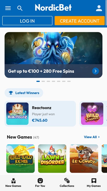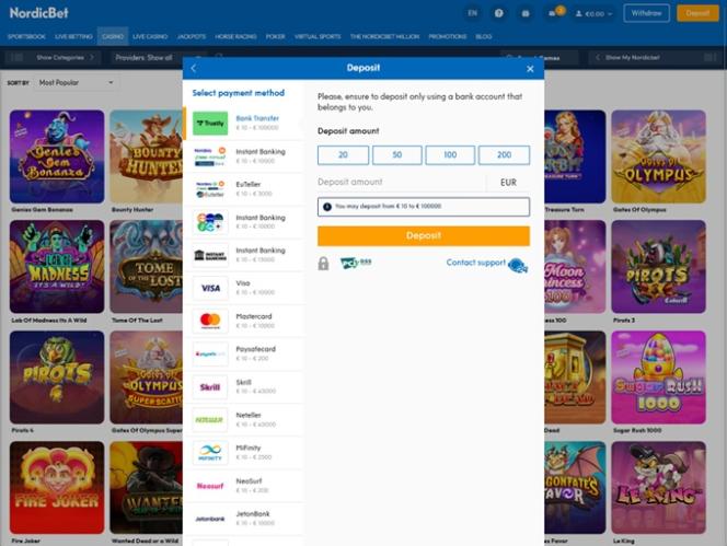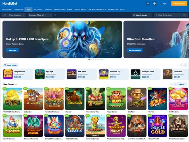 NordicBet Casinon takana on Microgaming, Net Entertainment, Playtech, 1x2gaming, Barcrest, Big Time Gaming, ELK Studios, Evolution Gaming, EYECON, iSoftBet, lightningboxgames, Novomatic, Oryx, Play'n GO, playson, Quickspin, Relax Gaming, Thunderkick, Yggdrasil, Endorphina, Wazdan, Realistic Games, Betgames, Booming Games, Stakelogic, Pragmatic Play, Nolimit City, Red Tiger Gaming, IGT, Fantasma Games, SYNOT Games, Kalamba, Triple Edge Studios, Northern Lights Gaming, Evoplay, Stormcraft Studios, Switch Studios, Bulletproof Games, All41 Studios, Gluck Games, Gameburger Studios, Pulse 8 Studios, Neon Valley Studios, Golden Rock Studios, Swintt, Shuffle Master, SpinPlay Games, HungryBear Gaming, SmartSoft Gaming, Blue Guru Games, On Air Entertainment, Buck Stakes Entertainment, Games Global, Reevo, Wizard Games, Ash Gaming, Bally Technologies, bluberi, Blueprint Gaming, Greentube, Leander Games, NextGen, NYX Interactive, Pariplay, Push Gaming, WMS, Inspired Gaming, SG Interactive, Gamomat, Red7Mobile, CORE Gaming, Scientific Games, Side City Studios, Authentic Gaming, Bally Wulff, Iron Dog Studio, Old Skool Studios, Foxium, Betdigital, Just For The Win, Reflex Gaming, PearFiction Studios, Apollo Games, Wild Streak Gaming, Slingshot Studios, Fortune Factory Studios, 4ThePlayer, AvatarUX, Gamevy, Crazy Tooth Studio, NetGaming, ReelPlay, Alchemy Gaming, Rarestone Gaming, Snowborn Games, Boomerang Studios, Hacksaw Gaming, Max Win Gaming, Gold Coin Studios, Bang Bang Games, Half Pixel Studios, Slotmill, Peter And Sons, Aurum Signature Studios, Lucksome Gaming, Religa, Area Vegas, RAW iGaming, ELA Games, Betradar, Wishbone Games, Apparat Gaming, Spribe, Circular Arrow, Print Studios, HammerTime Games, Four Leaf Gaming, INO Games, Nailed It! Games, Atomic Slot Lab, Neko Games, Reel Kingdom, Oros Gaming, Indigo Magic, Light & Wonder, Kitsune Studios and Sneaky Slots , ja sen pelejä tarjotaan sekä verkkopohjaisen alustan että mobiilisivuston kautta, joka laajentaa pelaamisen älypuhelimeen tai tablettiin.