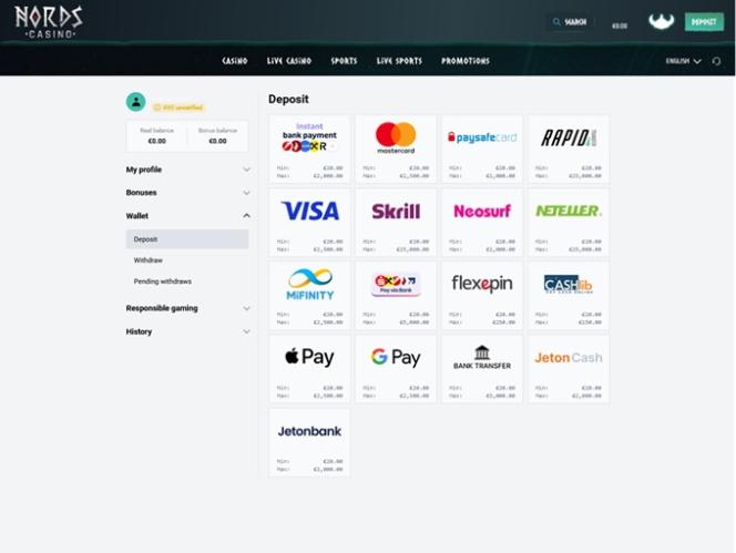 Nords Casino on valtava uhkapelisivusto, joka painottaa erikoispelien valikoimaansa. Pelaajat voivat pelata valtavaa valikoimaa oikean rahan kolikkopelejä, live-jakajapelejä, pikavoittopelejä ja pöytäpelejä lukuisten urheiluvedonlyöntiominaisuuksien, kampanjoiden ja palkitsevien bonusten lisäksi. Brändi hyväksyy pelaajia Saksasta , Itävallasta, Belgiasta, Norjasta, Ruotsista ja Tanskasta.