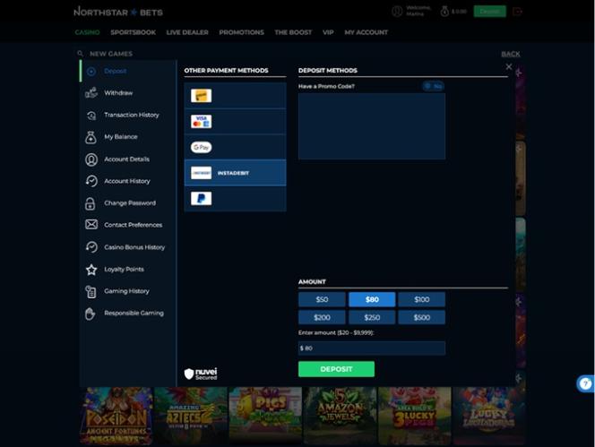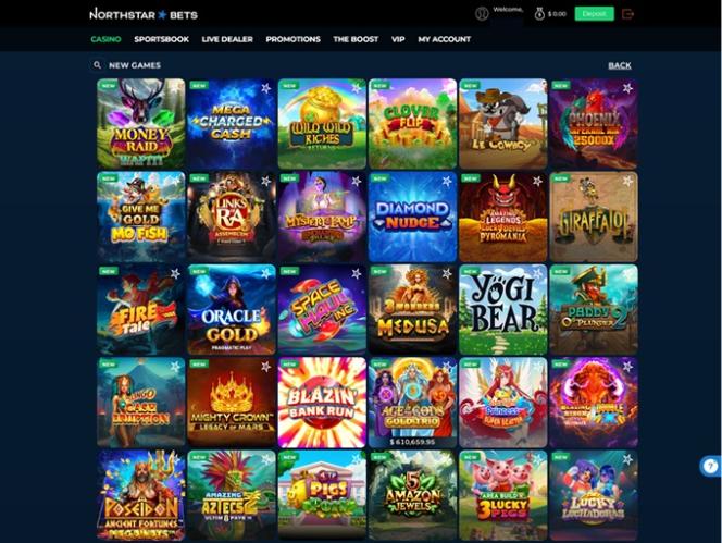 NorthStar Bets Casino tarjoaa pelejä, jotka on optimoitu kaikille saatavilla oleville laitteille – mobiililaitteille ja tietokoneille. Ne on järjestetty seuraaviin osioihin: Live-blackjack, live-ruletti, live-baccarat ja peliohjelmat live-jakajalle sekä Premium-kolikkopelit, kolikkopelit, jackpotit, pöytäpelit ja kaikki pelit kasinolle.