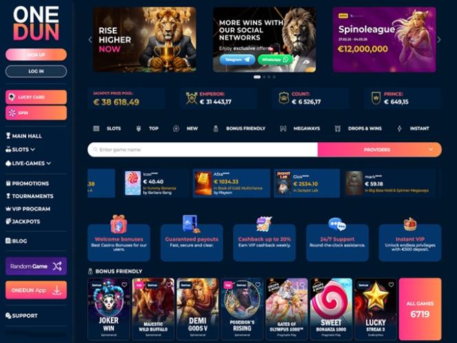 One Dun Casino näyttää lupaavalta tyylikkään muotoilunsa ja laajan pelivalikoimansa ansiosta. Vaikka en ole vielä kokeillut sitä, käyttäjäystävällinen käyttöliittymä ja houkuttelevat bonukset tekevät siitä tutustumisen arvoisen alustan!