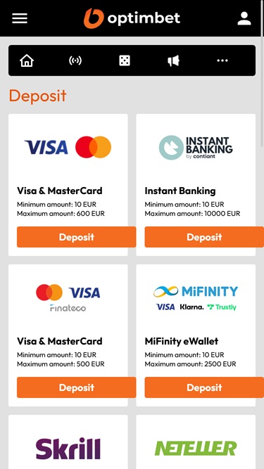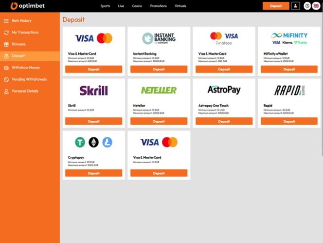 Samaa voidaan sanoa OptimBetistä, joka näyttää sopeutuneen tähän tilanteeseen varsin hyvin. Tämä tarkoittaa, että kryptopelaajilla on mahdollisuus hoitaa pankkitoimintojaan suosittujen ratkaisujen, kuten Bitcoinin , Ethereumin, Litecoinin, Ripplen, Solanan, Tetherin ja USD Coinin, avulla.