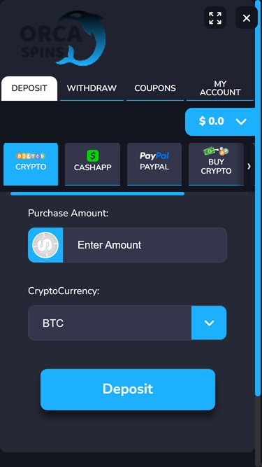 Jos asut Yhdysvalloissa ja etsit suoraviivaista kasinoa, Orca Spins saattaa olla tutustumisen arvoinen. Se on kryptoystävällinen sivusto , mikä tarkoittaa nopeampia kotiutuksia eikä maksujen odottamista. Bitcoin, Ethereum ja muutama muu vaihtoehto ovat käytettävissä talletuksiin ja kotiutuksiin – erittäin kätevää, jos pidät krypton mukana tulevasta joustavuudesta.