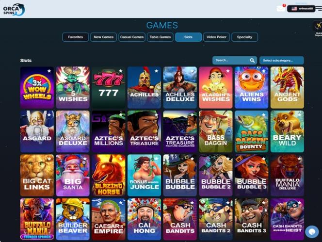 Orca Spins on myös koti 25 muut alla luetellut pelit: