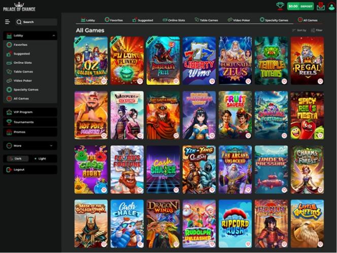 Palace of Chance on myös koti 25 muut alla luetellut pelit: