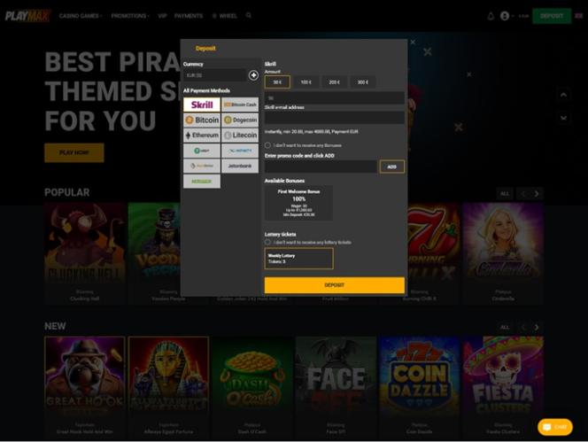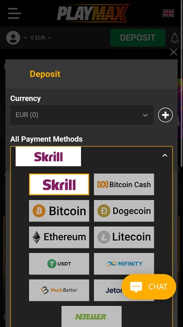 Playmax tarjoaa laajan valikoiman maksutapoja sekä talletuksiin että kotiutuksiin. Tarjolla on Visa ja Mastercard, e-lompakoita, kuten Skrill ja Neteller, sekä tietysti kryptovaluuttoja, joten todennäköisesti löydät itsellesi sopivan vaihtoehdon.
