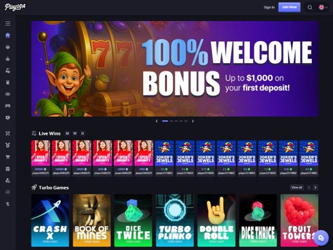 Vuonna 2025 perustettu Playoda on nettikasino, joka toivottaa tervetulleiksi pelaajat Kanadasta, Uudesta-Seelannista ja Irlannista. Brändi tarjoaa pelaajille laajan valikoiman kasinopelejä, mukaan lukien satoja nettikolikkopelejä, live-jakajia, pöytäpelejä, crash-pelejä ja lukuisia urheiluvedonlyöntivaihtoehtoja. Pelaajat voivat myös hyödyntää brändin tervetuliaistarjouksia ja useita kanta-asiakaspalkintoja.