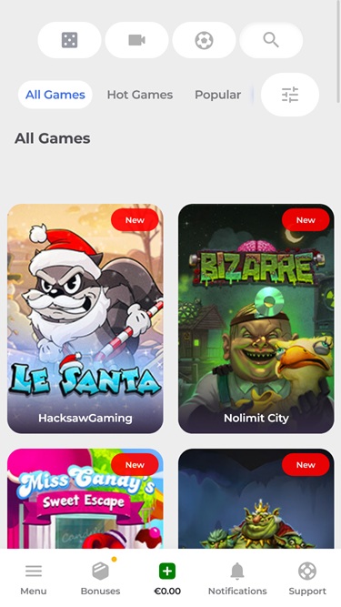 Pelivalikoima on monipuolinen: Aasia, Kirjat, Blackjackit, Bonuspelit, High Roller, Egypti, Merirosvot, Pöytäpelit, Videopokeri, Viikingit ja paljon muuta, joten jokaiselle löytyy jotakin, ja pelaajat voivat odottaa tältä sivustolta paljon uhkapeliviihdettä.