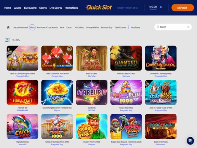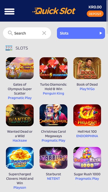 Vaikka QuickSlot näyttää ensi silmäyksellä yksinkertaiselta ja minimalistiselta, siinä on täysin toimiva kasinoalusta, jossa on vaalea tausta ja kauniisti pyöristetyt pelikuvat. Ohjattu rekisteröitymisprosessi vie vain muutaman hetken, joten voit siirtyä kokeilemaan joitakin saatavilla olevia kasinopelejä sen jälkeen.
