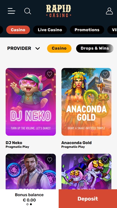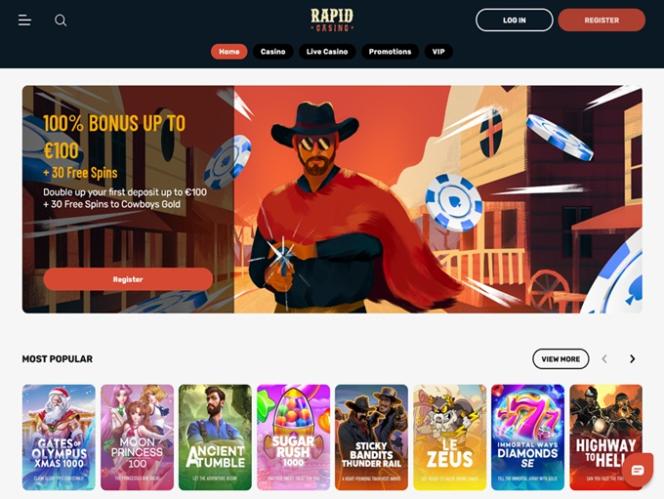 Rapid Casino muistuttaa "villiä länsiä", mutta itse asiassa tämä kasino keskittyy pääasiassa houkuttelemaan pelaajia Suomesta, Norjasta, Itävallasta, Kanadasta ja Uudesta-Seelannista.