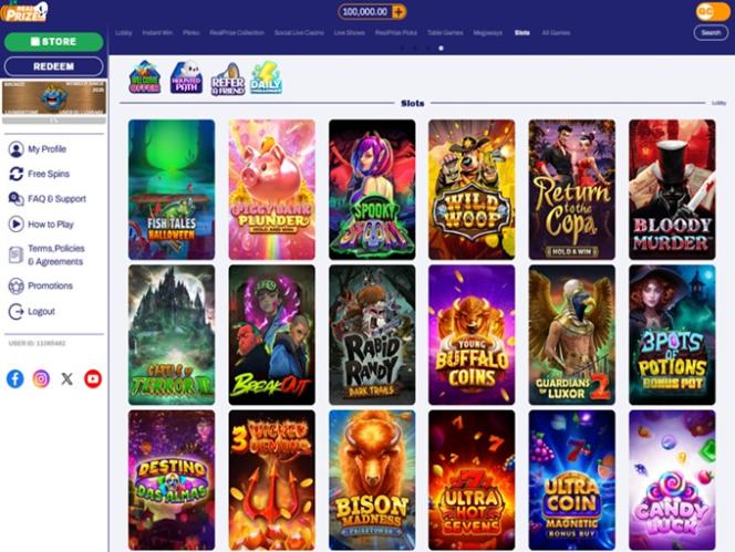 RealPrize Casino on yksi Yhdysvaltojen suurimmista arvontakasinoista, joka hyväksyy pelaajia. Ainoat rajoitetut osavaltiot ovat Washington, Idaho, Connecticut, Nevada, Louisiana, New York, New Jersey, Michigan ja Montana. Brändillä on upea valikoima kasinotyylisiä pelejä, kuten kolikkopelejä, live-jakajapelejä, pöytäpelejä ja pikavoittopelejä, ja se tarjoaa myös laajan valikoiman kampanjoita ja bonuksia.