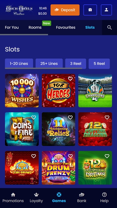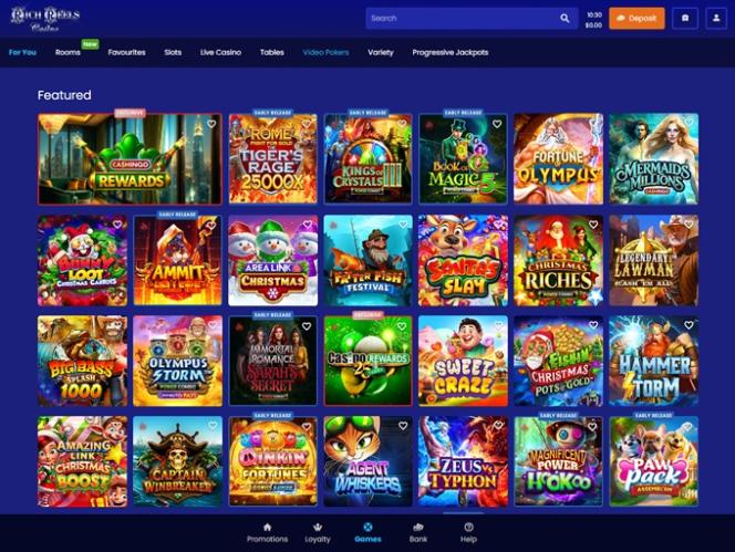 Rich reels casino on erittäin ammattimainen sivustosuuntautunut ja keskittynyt vain yhteen palveluntarjoajaan, joka Microgaming on, he tekevät paljon vaivaa tässä asiakkaassa ja voit pelata todella nopeassa tilassa kaikkia pelejä mukaan lukien kaikki kolikkopelit, sivusto tarjoaa myös hyviä bonuksia, mukaan lukien ensimmäinen maksu talletusbonus myös säännöllisiä tarjouksia, hyvä ja ystävällisellä tuella