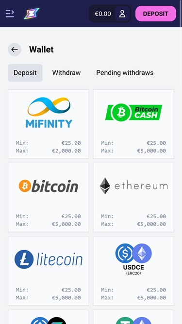 Kasino hyväksyy sekä fiat- että kryptovaluuttoja.