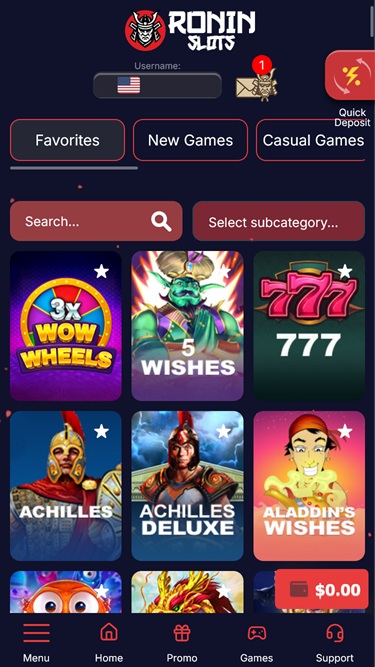 Ei ole yllätys, että Ronin Slots -nimisen kasinon tyyli seuraa tarkasti feodaalisen Japanin teemoja. Useimmiten näet erilaisia samuraisotureita koristamassa ruudullasi ja auttamassa sinua tällä pitkällä seikkailulla.