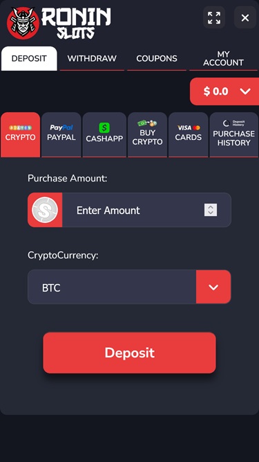 Hyväksyykö Ronin Slots Casino kryptovaluuttoja?