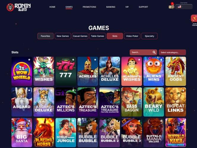 Ei voida sanoa, että Ronin Slotsin pelivalikoima olisi täynnä pelejä, mutta on reilua sanoa, että saatavilla olevat pelit tarjoavat mahdollisimman paljon monipuolisuutta . Portfolion tarjoajista vastaavat itse Real Time Gaming and Spinlogic Gaming .