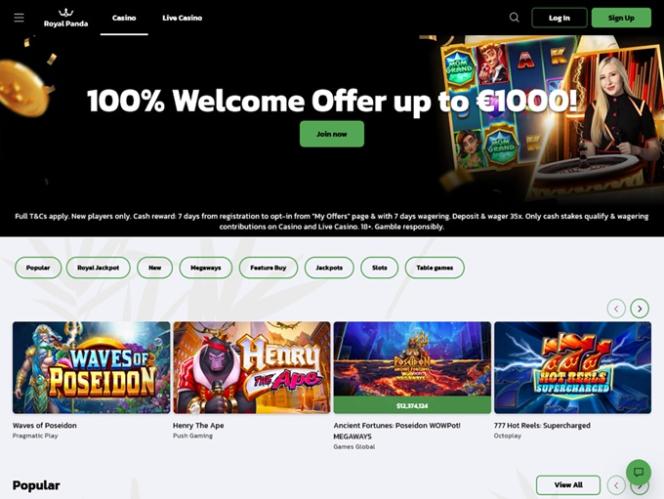 Royal Panda Casino on nettikasino, joka avasi ovensa vuonna 2014 ja jonka omistaa Royal Panda Limited. Lyhyessä ajassaan verkossa Royal Pandasta on tullut suosittu pelipaikka valtavan kasinopelivalikoimansa, erittäin nopeiden maksuaikojensa ja laajan progressiivisen jättipottiverkostonsa ansiosta.Kasinotiedot