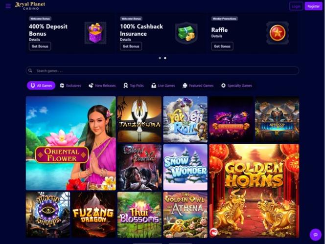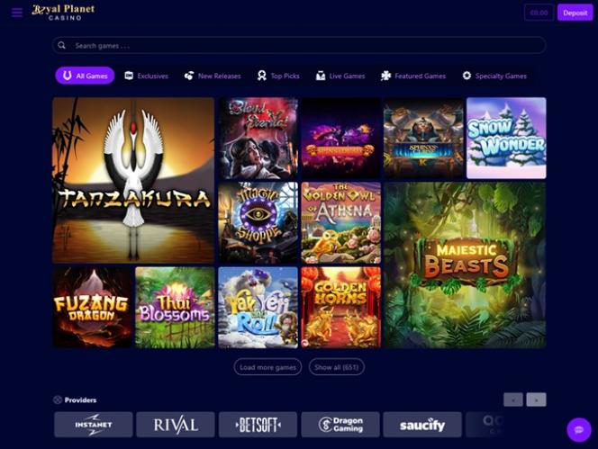 Royal Planet Casinon takana on BetSoft, Genesis Gaming, Rival, Saucify, Vivo Gaming, Spinomenal, Felix Gaming, Fugaso, Radi8 Games, Fresh Deck Studios, Woohoo Games, Qora Games, SmartSoft Gaming, Tom Horn Gaming, Genii, Wager Gaming, Dragon Gaming and Dragoon Soft , ja kasinon pelejä voi pelata sekä ladattavana ohjelmistona että verkkopohjaisen pikapelialustan kautta, jonka avulla voit pelata suoraan verkkoselaimesi kautta. Myös mobiilituki sisältyy, joten pelaamista voi tehdä sekä tableteilla että älypuhelimilla.Muut pelit