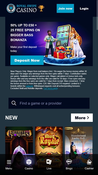 Jos olet nähnyt yhden, olet nähnyt sen kaiken. Royal Swipe Casino on toinen ProgressPlay-kasino, mutta tällä kasinolla ei ole vain ruma nimi, vaan sillä on myös huonosti tehty verkkosivusto. Älä anna ulkonäön pettää sinua, niin he sanoivat, ja siksi annoin tälle kasinolle mahdollisuuden. No... luulen, että se, joka sanoi tuon sanonnan, oli humalassa, koska minulla oli todella huono onni tämän kasinon kanssa, menetin tallettamani rahani ja bonukseni 30 minuutissa. Joskus on ikävää olla oikeassa.