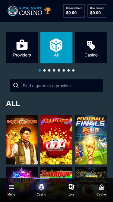 Royal Swipe -kasino on online-vedonlyöntisivusto, joka avasi ovensa vuonna 2014. Kasinon omistaa ja sitä ylläpitää ProgressPlay, arvostettu ryhmä, joka julkaisee Power Slots-, Dream Palace- ja Pocket Casino -kasinot. Tähän mennessä Royal Swipe -kasino on saanut yleisesti ottaen hyvän vastaanoton pelaajilta, jotka nauttivat kasinon pelivalikoimasta, mutta kritisoivat sivuston korkeita kierrätysvaatimuksia bonuksille.