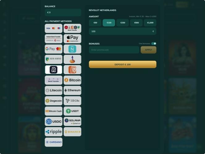 Kasino hyväksyy sekä fiat- että kryptovaluuttoja.