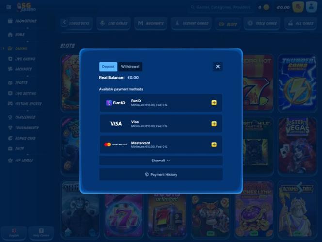 Pankkiasioiden suhteen SG Casino tarjoaa monia erilaisia ratkaisuja talletusten suhteen. Pelaaja voi halutessaan maksaa kryptovaluutoilla, sillä se on ollut erittäin suosittu vaihtoehto viime aikoina. Tarjolla on myös suosittuja maksuvaihtoehtoja, kuten MasterCard, Sticpay, AstroPay ja muita. Pelaajat voivat halutessaan tallettaa myös Neosurfin kautta .