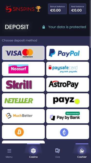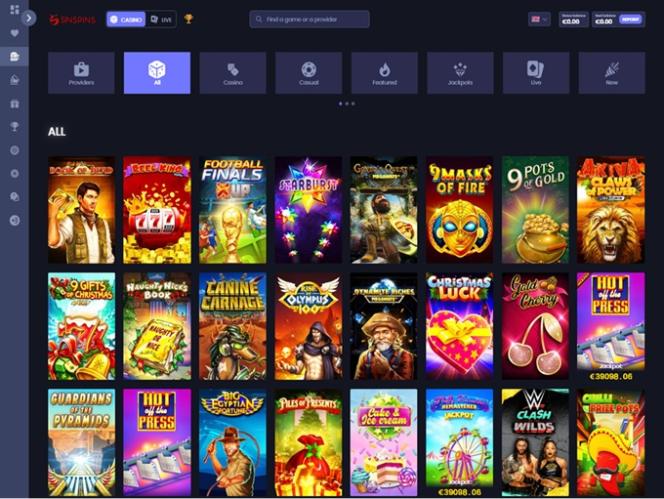 Sin Spins Casinon takana on Microgaming, Net Entertainment, Playtech, 1x2gaming, Barcrest, Big Time Gaming, ELK Studios, Evolution Gaming, EYECON, lightningboxgames, Novomatic, Play'n GO, Rabcat, Thunderkick, Wazdan, Nolimit City, Red Tiger Gaming, Spinomenal, SYNOT Games, Skywind, Triple Edge Studios, Northern Lights Gaming, Stormcraft Studios, Switch Studios, All41 Studios, Gluck Games, Gameburger Studios, Pulse 8 Studios, Slot Factory, Neon Valley Studios, Shuffle Master, SpinPlay Games, Real Dealer Studios, GONG Gaming, On Air Entertainment, Buck Stakes Entertainment, Games Global, Blueprint Gaming, Greentube, Tom Horn Gaming, WMS, Inspired Gaming, SG Interactive, Red7Mobile, CORE Gaming, Scientific Games, Reel Time Gaming, Iron Dog Studio, Old Skool Studios, Foxium, Betdigital, Just For The Win, PearFiction Studios, Wild Streak Gaming, Slingshot Studios, Fortune Factory Studios, Gamevy, Crazy Tooth Studio, Alchemy Gaming, Black Pudding Games, Snowborn Games, Hacksaw Gaming, Gold Coin Studios, Half Pixel Studios, Aurum Signature Studios, Lucksome Gaming, Area Vegas, Wishbone Games, Circular Arrow, HammerTime Games, INO Games, Nailed It! Games, Neko Games, Reel Kingdom, Oros Gaming and Light & Wonder , ja sen pelit tarjotaan verkkopohjaisen pikapelialustan kautta, jonka avulla käyttäjät voivat rekisteröityä, tallettaa ja pelata pelejä heidän verkkopohjaisen pikapelialustan kautta. Kasino tukee myös mobiilipelaamista, joten voit pelata älypuhelimella tai tabletilla.Blackjack