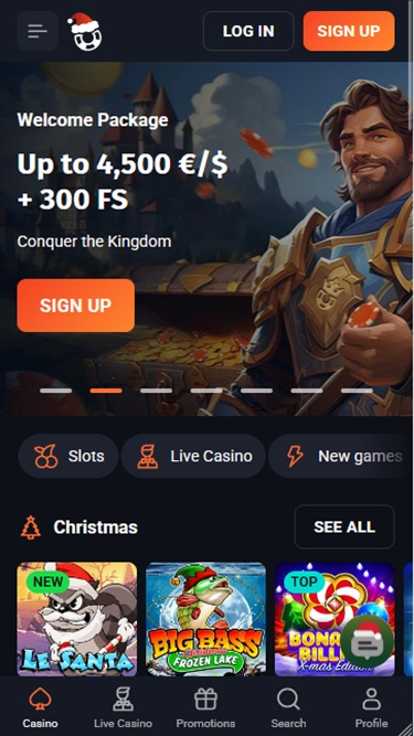 Pääsivulla esitellään parhaat ajankohtaiset tarjoukset suosituimpien ja uusimpien pelien rinnalla. Pelaajat voivat täällä myös lukea saatavilla olevista ohjelmistotoimittajista ja usein valituista maksutavoista . Sivuston alareunassa voit tarkastella tärkeitä sivuja, kuten käyttöehtoja, tietosuojakäytäntöä, lisenssejä ja vastuullista pelaamista.