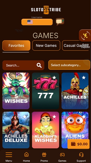 Mutta ennen kuin siirrymme kasinopelivalikoiman tarkasteluun tarkemmin, mainitaanpa, että Sloto Tribe Casino on saatavilla sekä tietokone- että mobiilialustoilla näytön koosta tai käyttöjärjestelmästä riippumatta. Huomaa kuitenkin, että virheettömän pelikokemuksen ja nopeiden pelien latausaikojen saamiseksi tarvitset keskeytymättömän internetyhteyden.