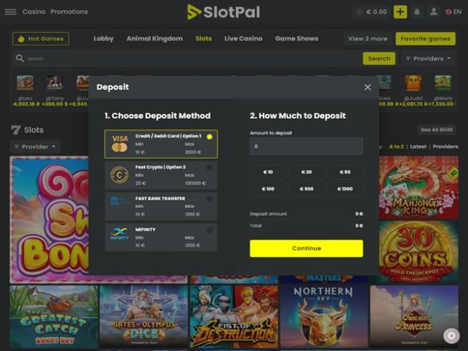 Rekisteröitymisprosessin jälkeen saat käyttöösi pelaajan kojelaudan. Voit navigoida siinä vaivattomasti, käytätpä kasinoa tietokoneellasi tai matkapuhelimellasi, sillä Slotpal on responsiivinen ja optimoitu kaikille käytettävissä oleville laitteille. Tämä tarkoittaa myös sitä, että kasinopelien pelaaminen liikkeellä ollessasi on helppoa.