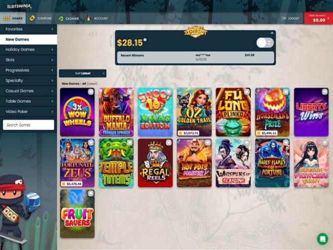 Aluksi haluamme mainita, että Slots Ninja on kaikkea muuta kuin pelkkä kolikkopelien nettikasino. Tämän pelisivuston vierailijoilla on mahdollisuus tutustua useisiin houkutteleviin kategorioihin, kuten: Uudet pelit, Progressiiviset pelit, Kolikkopelit, Erikoispelit, Pöytäpelit ja Videopokeri. Tämän arvostelun kirjoitushetkellä ainoa puuttuva kategoria oli live-jakajakasino- osio.