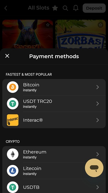 Kasino hyväksyy sekä fiat- että kryptovaluuttoja.