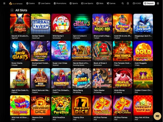 Vuonna 2025 perustettu SlotStake Casino on valtava nettikasino, joka hyväksyy pelaajia pääasiassa Kanadasta ja lupaa unohtumattoman pelikokemuksen. Tarjolla on laaja valikoima kasinopelejä ja urheiluvedonlyöntivaihtoehtoja, mukaan lukien tuhansia oikean rahan kolikkopelejä, live-jakajapelejä, pöytäpelejä ja pikavoittopelejä. Brändi tunnetaan myös vankasta kampanjasuunnitelmastaan lukuisine bonuksineen ja tarjouksineen.