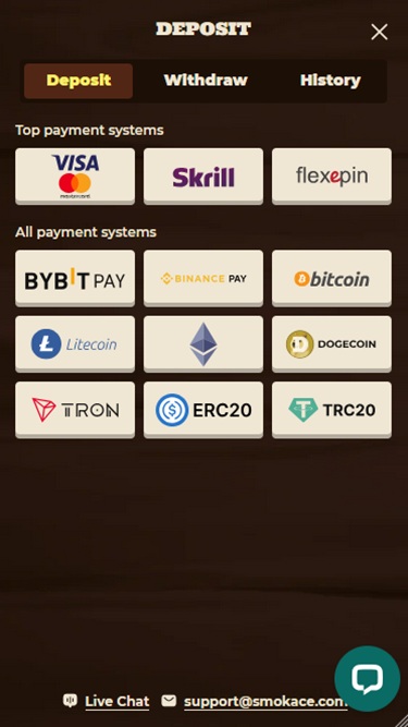 SmokeAce Casinolla voit ottaa yhteyttä asiakaspalveluun asettaaksesi rajoituksia tilillesi , mikä voi olla erittäin hyödyllistä pitkällä aikavälillä. Suosittelemme, että käytät näitä ominaisuuksia, jos sinusta tuntuu, että pelaamisesi on riistäytymässä käsistä.