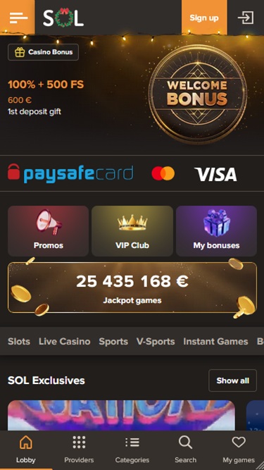 Sen lisäksi, että Sol on seuraavaksi monien kasinopelaajien suosikki virtuaalipelipaikka nettikasinopalveluidensa ansiosta, meidän on mainittava, että tämä operaattori tarjoaa myös urheiluvedonlyöntiä. Tämän sanottuamme keskitymme Solin nettikasinotarjontaan.