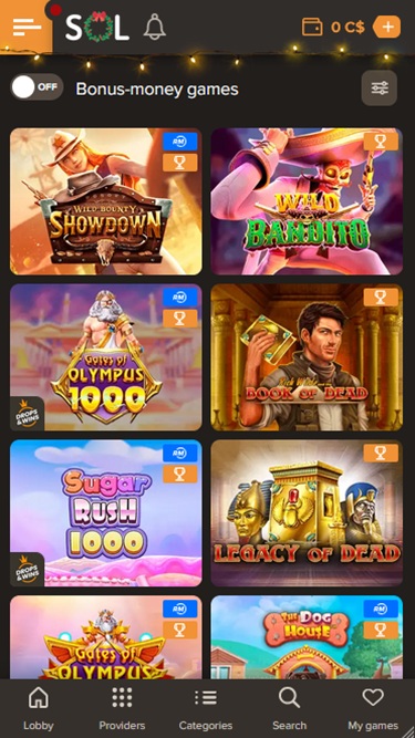 Pelaajat, jotka vierailevat Sol Casinolla tietty peli mielessään, löytävät sen todennäköisesti sieltä. Tämä on selvästi seurausta onnistuneista kumppanuuksista useiden eri ohjelmistokehittäjien kanssa ( Microgaming , NetEnt, iSoftBet, Yggdrasil...).